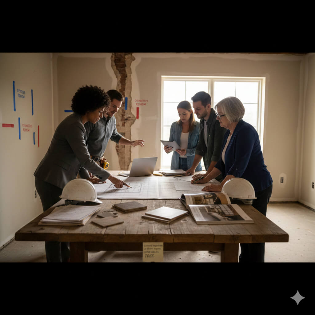 Developing the renovation list is a process, not a one-time event. It starts with an initial list and gets refined through additional steps. Here’s the typical sequence we follow: