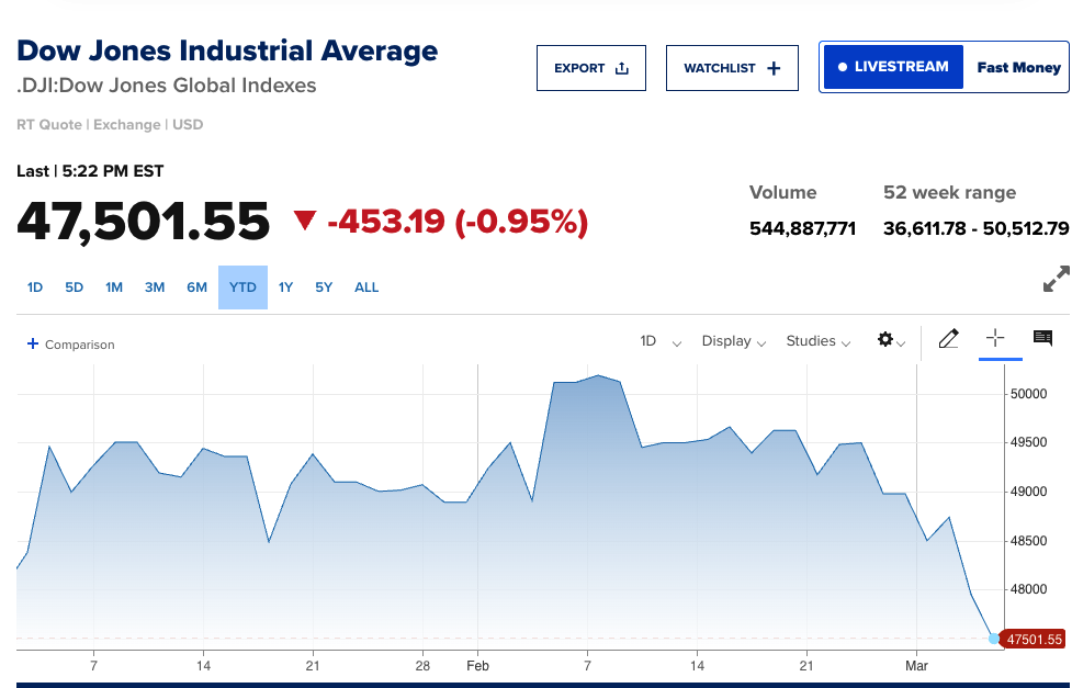 Based on the financial markets’ responses so far, it appears largely business as usual. The war does not seem to have had any significant impact (except for gasoline prices), yet. Of course, if the oil and gas traffic through the Straits of Hormuz is stopped for a prolonged period, the oil and gas prices will likely spike, and may trigger a spike in the inflation rate (even if that does happen, I’m not sure if the Fed will hike rates as the spike is not caused by an overheated economy).