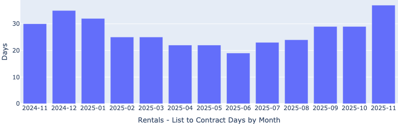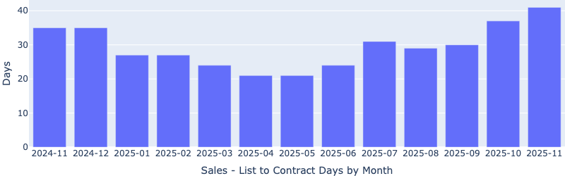 Median days on the market increased moderately MoM, typical for the holiday season.
