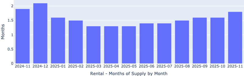 Rental inventory increased MoM, now at almost 1.8 months, still a landlord’s market.
